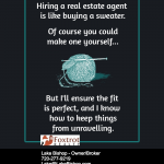 Hiring a real estate agent is like buying a sweater. Of course you COULD make one yourself… BUT I’ll ensure the fit is perfect, and I know how to keep things from unraveling. Lake Bishop – Broker Owner Foxtrot Realty 720-277-9219 [email protected] www.GreenValleyRanchRealEstateInfo.com #1 Selling agent in Green Valley Ranch Certified Military Residential Specialist #denverrealestate… [Read More]