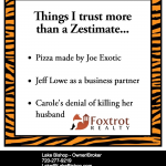 Things I trust more than a Zestimate… – Pizza Made By Joe Exotic – Jeff Lowe as a Business Partner – Carole’s denial of killing her husband Lake Bishop – Broker Owner Foxtrot Realty 720-277-9219 [email protected] www.GreenValleyRanchRealEstateInfo.com #1 Selling agent in Green Valley Ranch Certified Military Residential Specialist #denverrealestate #denver #colorado #denverhomes #residentialrealestate #colorado #cityofdenver… [Read More]