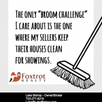 The Only “Broom Challenge” I care about is the one where my sellers keep their houses clean for showings. Buyer have a hard time looking past clutter. We live in a house differently than we show a house. Lake Bishop – Broker Owner Foxtrot Realty 720-277-9219 [email protected] www.GreenValleyRanchRealEstateInfo.com #1 Selling agent in Green Valley Ranch… [Read More]