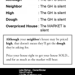 Although: The GH is silent Neighbor: The GH is silent High: The GH is silent Dough: The GH is silent Overpriced Home: The MARKET is silent Although your neighbor’s house may be priced high, that doesn’t mean they’ll get the dough they’re asking for. Price your house right to get your house SOLD…. And for… [Read More]