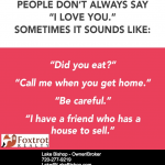 People don’t always say “I love you.” Sometimes it sounds like: “Did you eat?” “Call me when you get home.” “Be careful.” “I have a friend who has a house to sell.” The last one is the best way to tell a real estate agent you love them! Thank you for all of the referrals!… [Read More]