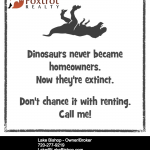 Dinosaurs never became homeowners. Now they’re extinct. Don’t chance it with renting. Call me! Seems like some pretty solid advice. Lake Bishop – Broker Owner Foxtrot Realty 720-277-9219 [email protected] www.GreenValleyRanchRealEstateInfo.com #1 Selling agent in Green Valley Ranch Certified Military Residential Specialist #denverrealestate #denver #colorado #denverhomes #residentialrealestate #colorado #cityofdenver #coloradorealestate #themilehighcity #denverlove #303 #5280 #denverrealtors #denverrealestateagent… [Read More]