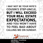 I may not be your wife’s cousin’s step-uncle, but I will exceed your real estate expectation, and you won’t have to feel bad about calling me on Sunday. Don’t feel bad about calling me any day of the week. Lake Bishop – Broker Owner Foxtrot Realty 720-277-9219 [email protected] www.GreenValleyRanchRealEstateInfo.com #1 Selling agent in Green Valley… [Read More]
